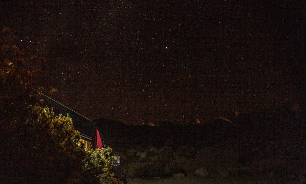 Wir sind froh um die Ruhe am Bus und genießen die Aussicht und den schon bald aufziehenden Sternenhimmel.