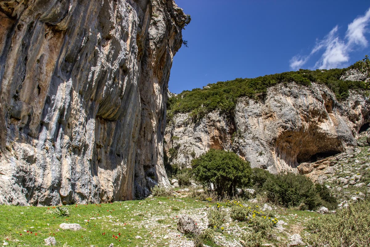 Oberhalb des Parklatzes ist Aloni der erste Sektor und liegt direkt neben der Hütte. Die Felsen ragen senkrecht aus einer Blumenwiese nach oben - was könnte es Schöneres geben? Auch die Routen sind lohnend und decken einen breiten Schwierigkeitsbereich ab. Sonne gibt's am Vormittag.